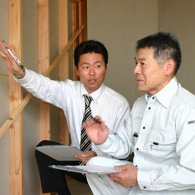 私たちは、現場管理も自ら行います。工事現場を豊富に経験した技術施工の社員です。リフォーム現場はオーケストラのようでもあり、医療現場のようでもあります、技術者が職人と綿密な連携を図り、また思いもよらないトラブルにも応用力と知恵を絞り、問題を解決します。