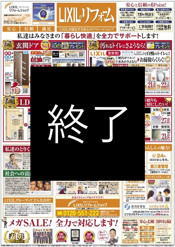 昨年も大好評だった、年に一度の『LIXILメガセール!』 おかげ様で昨年はこのSALEで全国570店舗中、『全国1位!』を受賞できました!それくらいお得なセールなのでキッチン・バス・トイレ・洗面・玄関ドアなど、リフォームするならこの機会に是非ぜひお電話またはメールでお問合せ下さい!