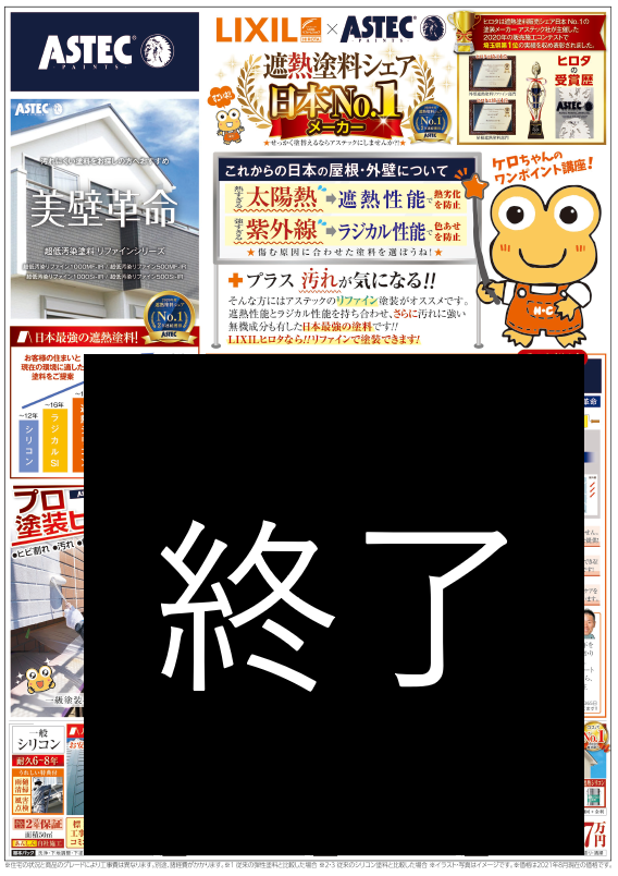 遮熱塗料販売シェア日本No.1の塗料メーカー『アステックペイント』で塗装ができます。