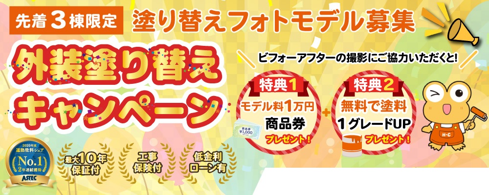 ✨外壁塗り替えキャンペーン! 開催期間 ~2026年5月31日 チラシ詳細情報 外壁塗り替えキャンペーン! 安い!丁寧!保証!で大好評! 屋根の雨漏り、外壁のヒビ、塗装の劣化、にお困りの方。 本物の”プロ塗装”をお探しなら!!地元で一番歴史のある創業25年のヒロタにご相談ください! 遮熱塗料販売シェア日本No.1の塗料メーカー『アステックペイント』で塗装ができます。 建物の特徴に合わせて、最適な塗料をご提案いたします!