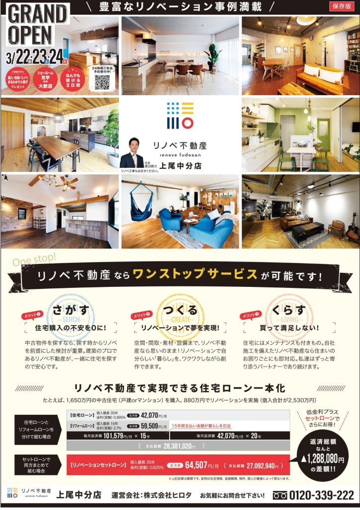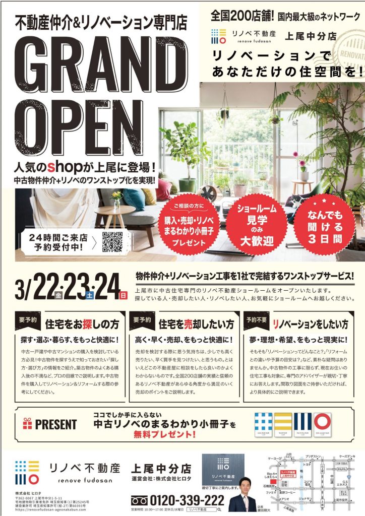 中古住宅専門のリノベ不動産ショールームをオープンいたします。