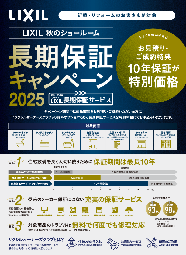 リクシル秋のショールーム長期保証キャンペーン2025~2025年9月1日~2025年12月28日