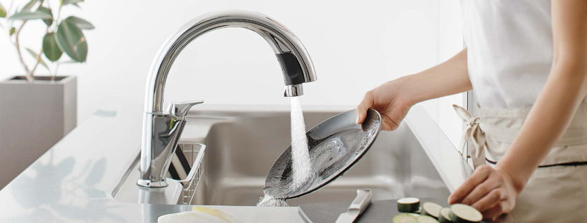 下ごしらえ中のちょっとした洗い物。差し出すだけで手早く洗えるから、調理のリズムをくずしません。