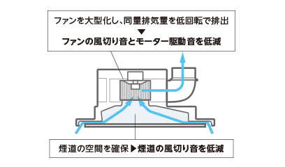 送風機の静音設計と、排気・給気流路の改善により、40db(図書館内並み)以下の静かさを実現しました。