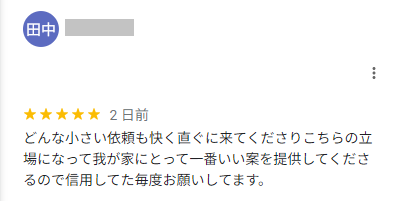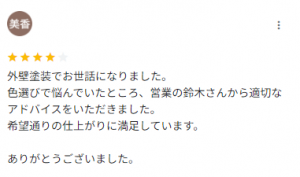 Google口コミで星4つ★★★★☆をいただきました!
