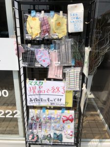 店内では、スタッフ手作りのマスクやストラップを販売しています♪