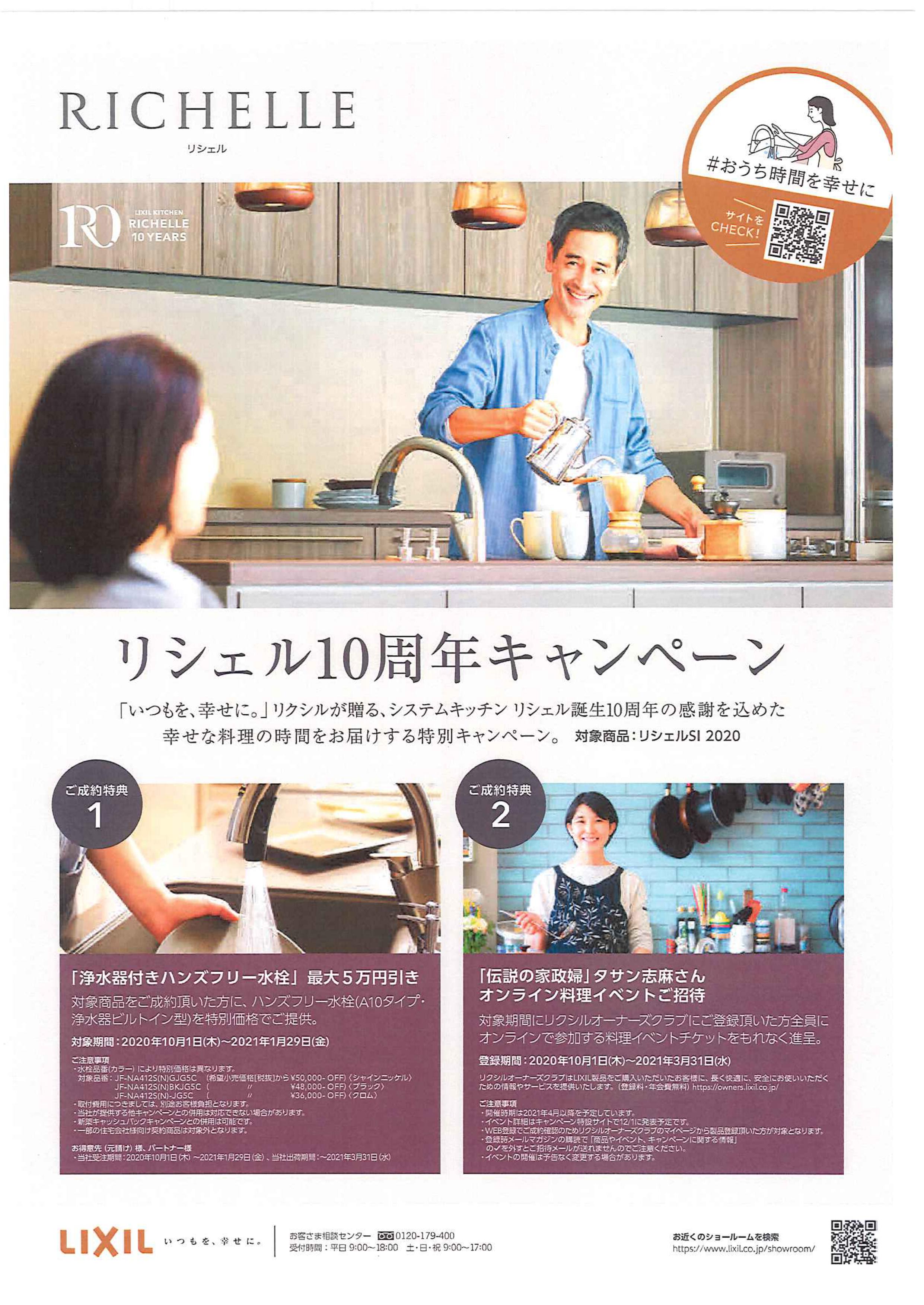 システムキッチン【リシェル】誕生10周年の感謝を込めた特別キャンペーンです!