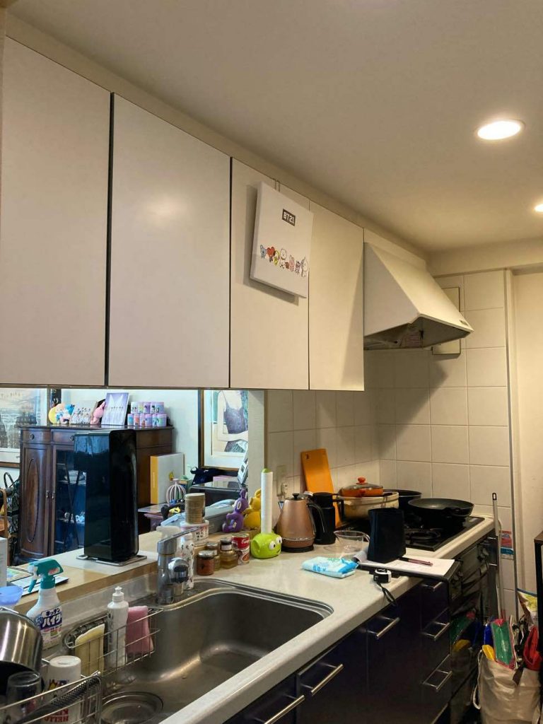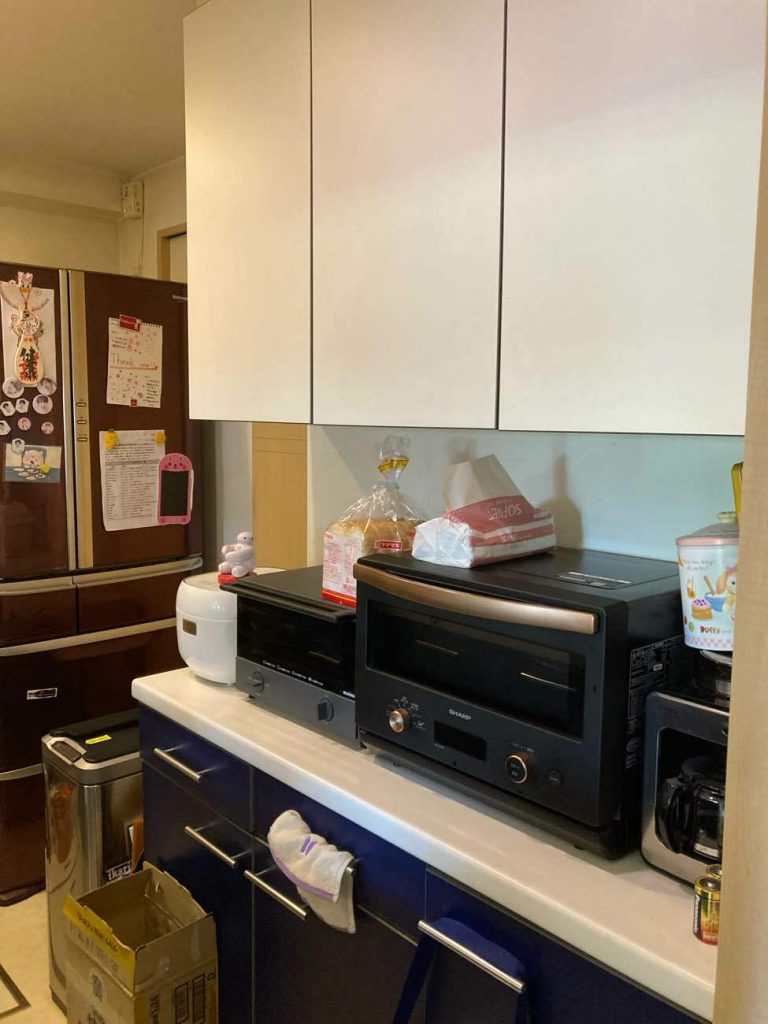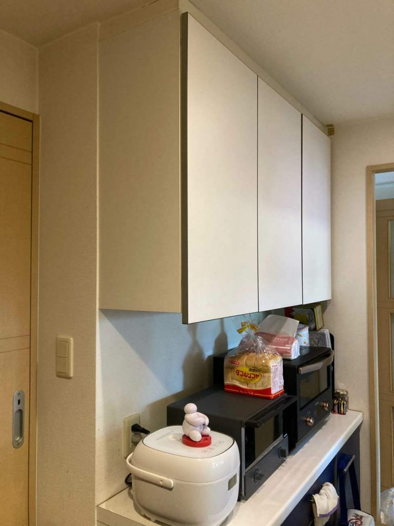 吊戸が低く頭を良くぶつけてしまうので撤去希望。収納量を増やして表に出していた調理器具を収納してスッキリさせたかった。
