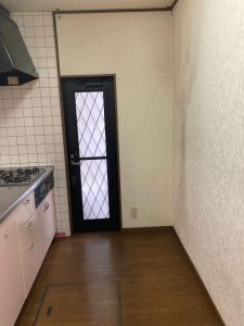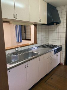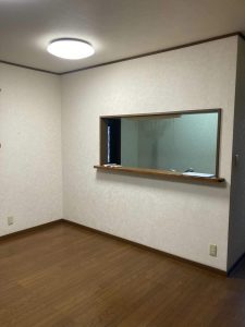 | 工事内容 | キッチンリフォーム(リクシル:ノクト+カップボード) 対面開口枠:ダイノックシート仕上げ |
