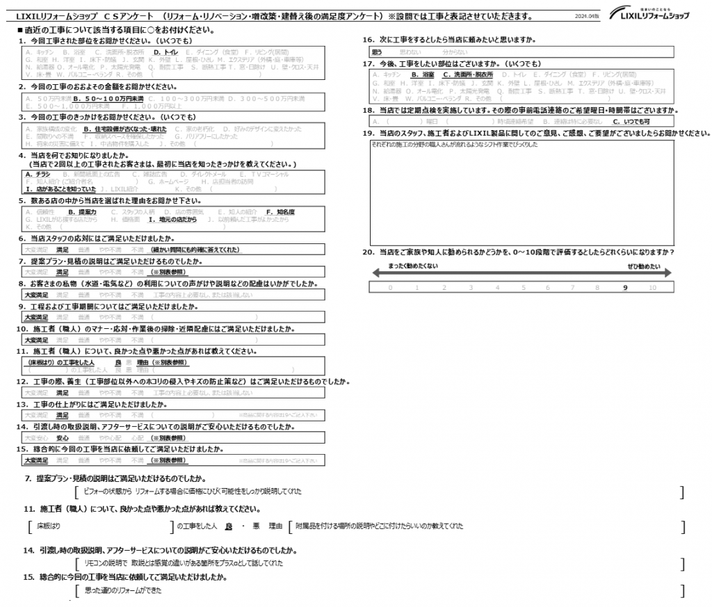 総合的に今回の工事を当店に依頼してご満足いただけましたか。